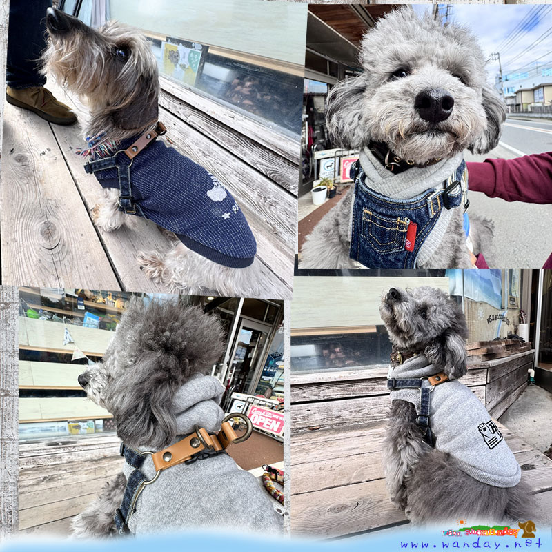 ちなみに ダックス3.2kg ぱんちゃん、プードル2.3kg リックともベルトを一番短くしたSサイズ。 プードル2kgちびたんは Sでも大きすぎて合いませんでした。